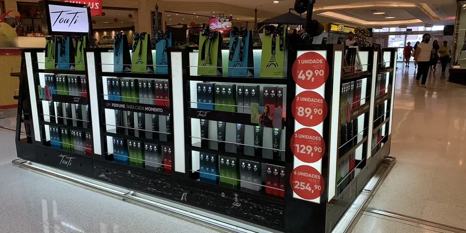 O formato mais econômico da rede é o Quiosque Smart, que ocupa cerca de 1 metro quadrado e funciona como um ponto automatizado para a venda de perfumes em locais de grande fluxo. O investimento inicial parte de R$ 12 mil, além de taxa de franquia de R$ 5 mil, e a operação pode ser conduzida por uma ou duas pessoas. Mesmo com estrutura reduzida, o modelo apresenta faturamento médio mensal em torno de R$ 15 mil, com retorno estimado entre três e seis meses.